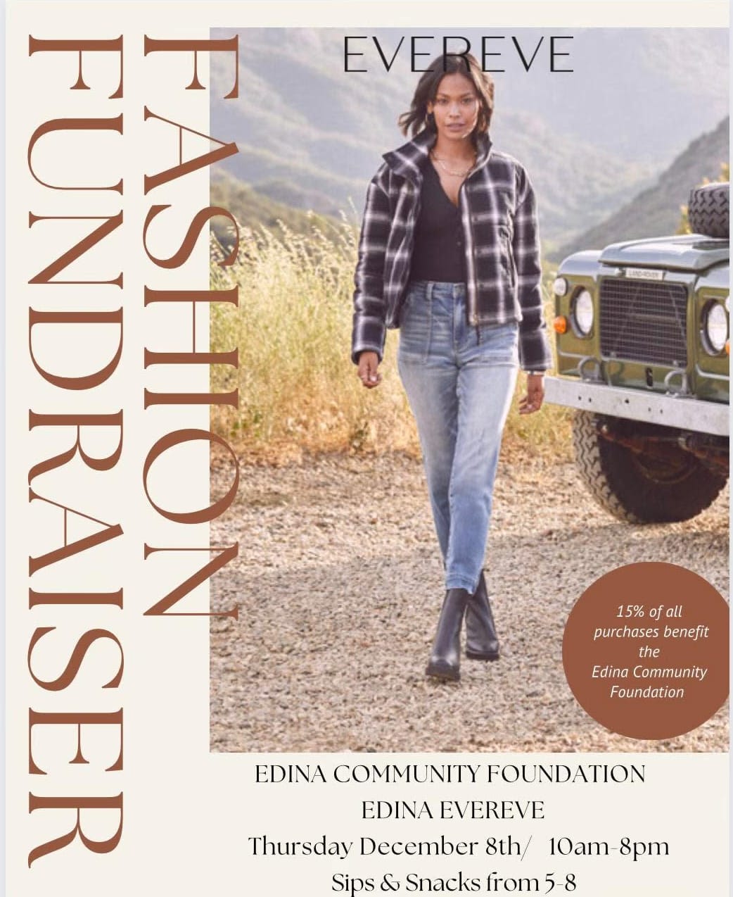 All day on December 8th, Evereve Edina is donating 15% of sales to the Edina Community Foundation.